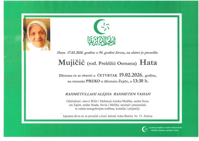 HomeDženazeDženaza – Hata Mujičić Urednik18. Februara 2026. 8:56 KM_C3320i Q76 CATEGORIES Dženaze Share ThisAUTHORUrednik