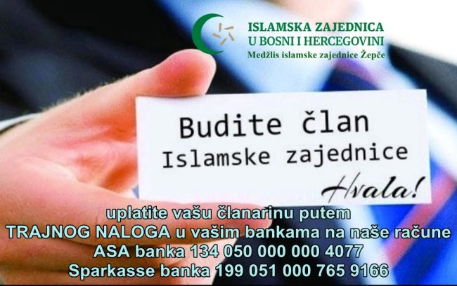 Važeći Pravilnik MIZ-e Žepče, regulisao je članstvo i članarinu – zato – raspitajte se u svom džematu – ko je blagajnik – koje su kategorije – način na koji se postaje član – kontaktirajte Medžlis – pitajte imame – napravite TRAJNI NALOG i vrlo jednostavno plaćajte članarinu !